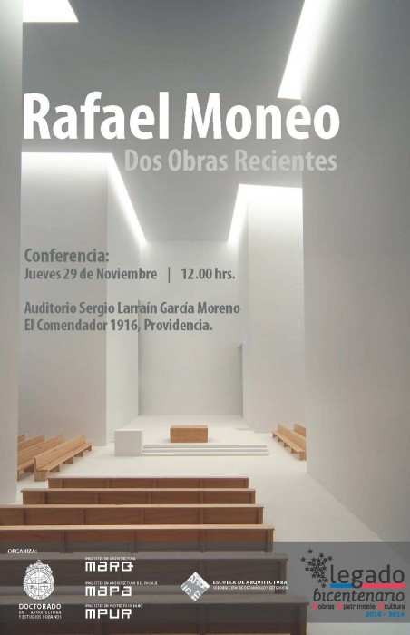 Os invitamos a que nos conteis qué os ha parecido la conferencia que Rafael Moneo dará este Jueves a las 29 de Noviembre a las 12:00 en la Escuela de Arquitectura de la Pontificia Universidad Católica de Chile en la que presentará dos de sus ultimas obras.