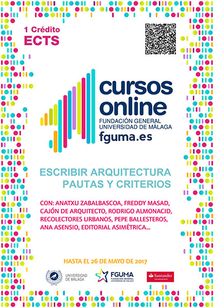Una vez más nos gustaría volver a presentaros y recomendaros la nueva edición del curso online “Escribir arquitectura. Pautas y criterios” que imparte la Fundación de la Universidad de Málaga.