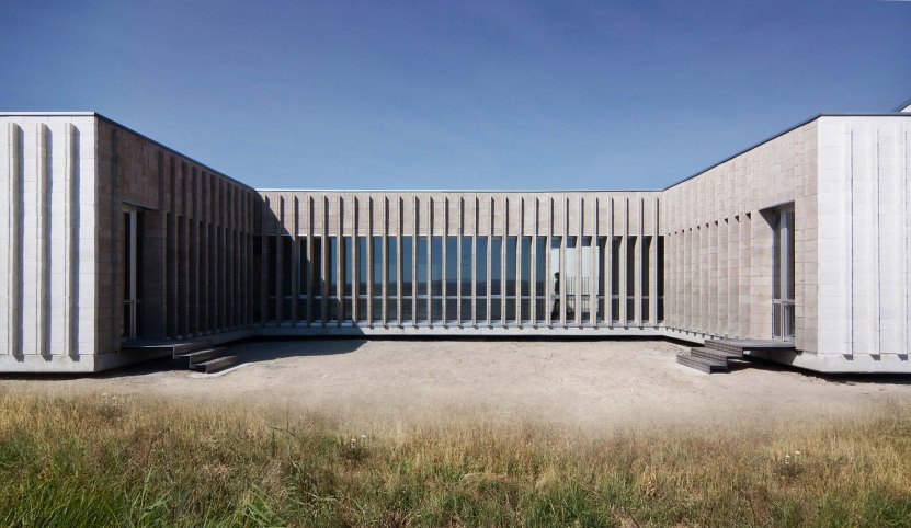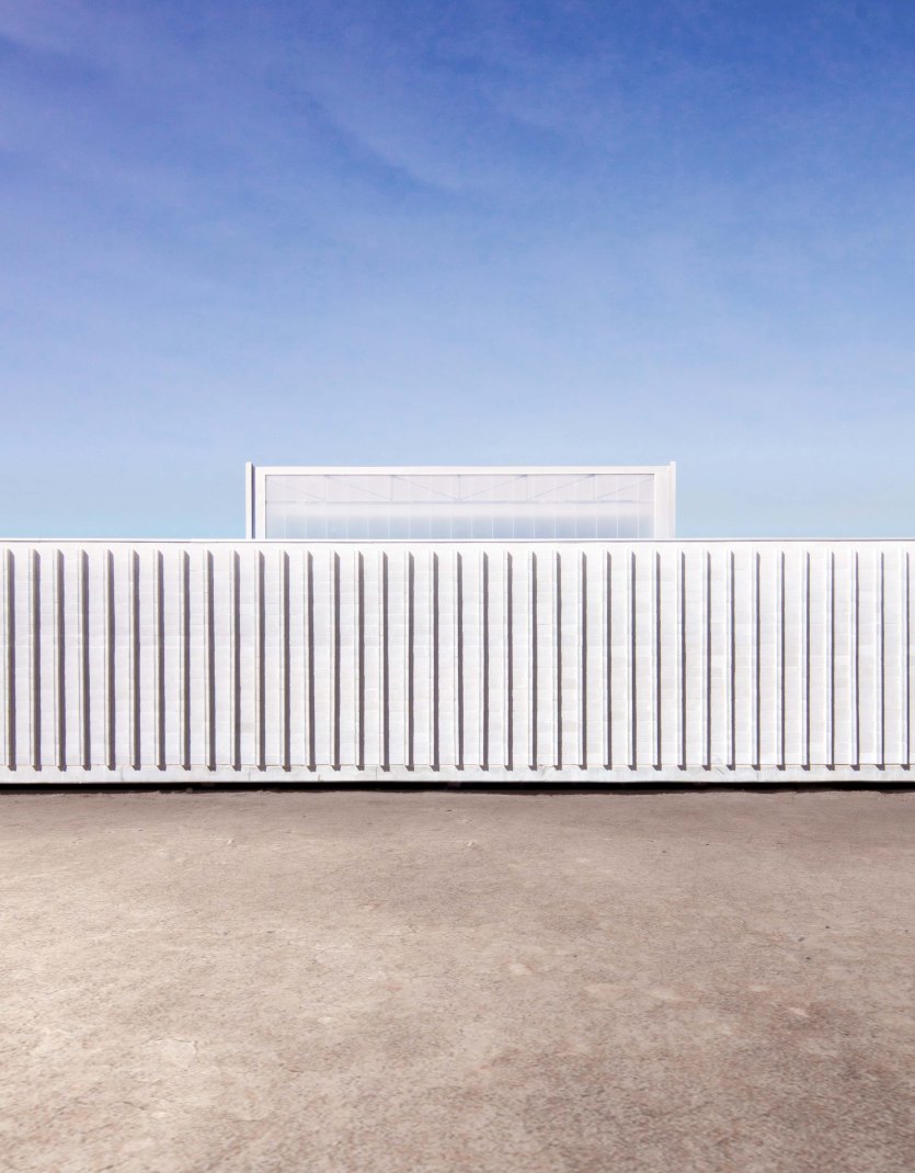 Estimulante uso del bloque de hormigón blanco basado en un sencillo e ingenioso aparejo estriado para crear un ritmo de claroscuros y profundidad en la fachada de la Residencia de Mayores de Aldeamayor de San Martín (Valladolid, 2017) de Óscar Ares Álvarez (Contextos de Arquitectura y Urbanismo)