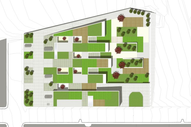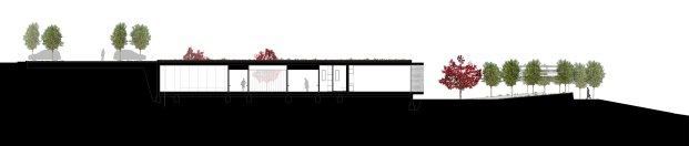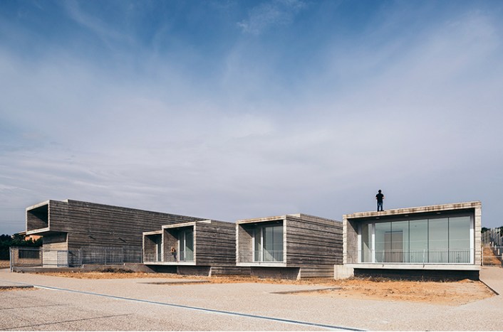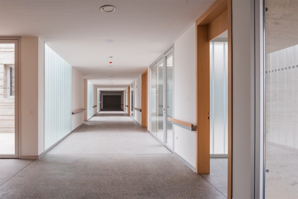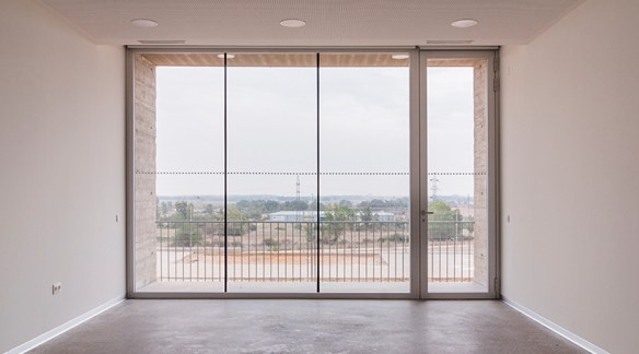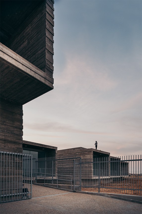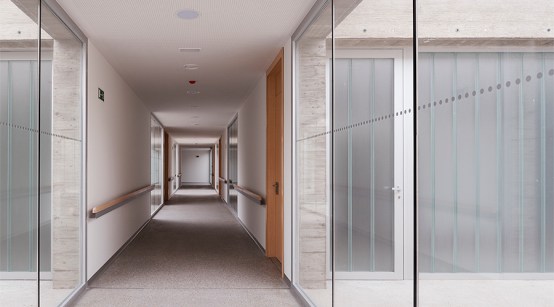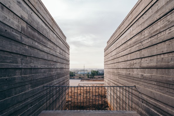 Estimulante reinterpretación de la linea del horizonte al rotar un estrato y relacionarlo con el paisaje castellano en el Centro de Día para Enfermos de Alzheimer en Benavente (Zamora, 2009-17) de VRa (Rubén García Rubio y Sonsoles Vela Navarro)