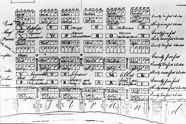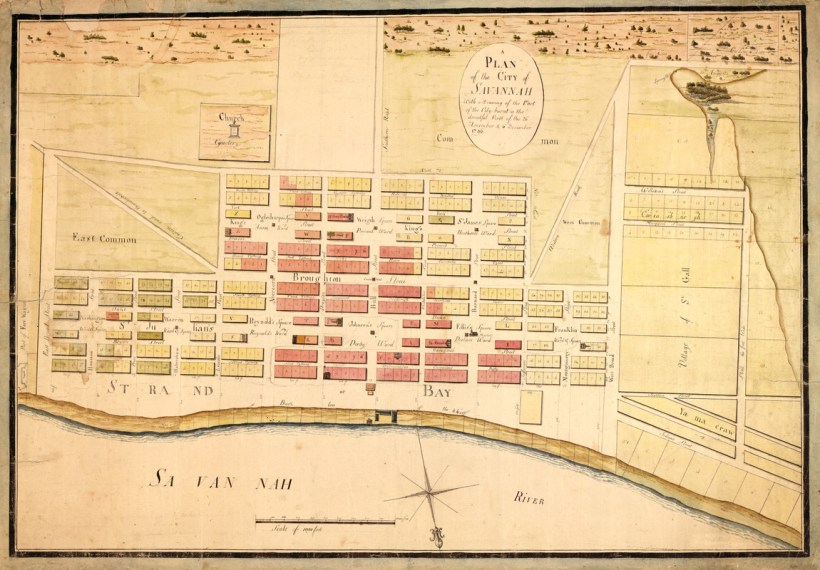 «A plan of the city of Savannah : with a drawing of the part of the city burnt in the dreadful fires of the 26 November & 6 December, 1796». Marian S. Carson Collection (Library of Congress)