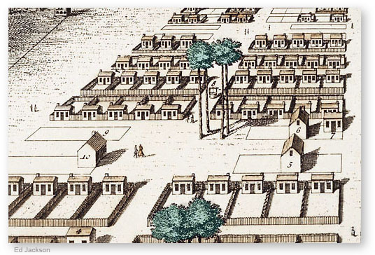 Detalle de «A View of Savannah as It Stood on the 29th of March 1734». Hargrett Rare Book and Manuscript Library, University of Georgia Libraries.