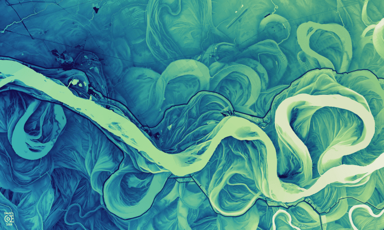 Daniel Coe, catographer. Lidar-derived image of the Mississippi River along the border of Arkansas and Mississippi, southwest of Memphis, Tennessee.