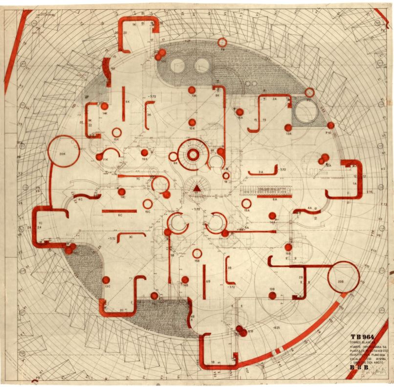 Francisco Javier Saénz de Oíza. Edificio Torres Blancas. Planta de primer sótano (1964)