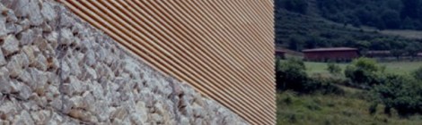Estimulante diálogo entre una celosía de madera, un basamento de gaviones y la fuerza de la naturaleza de Capilla y Vallejo Arquitectos.